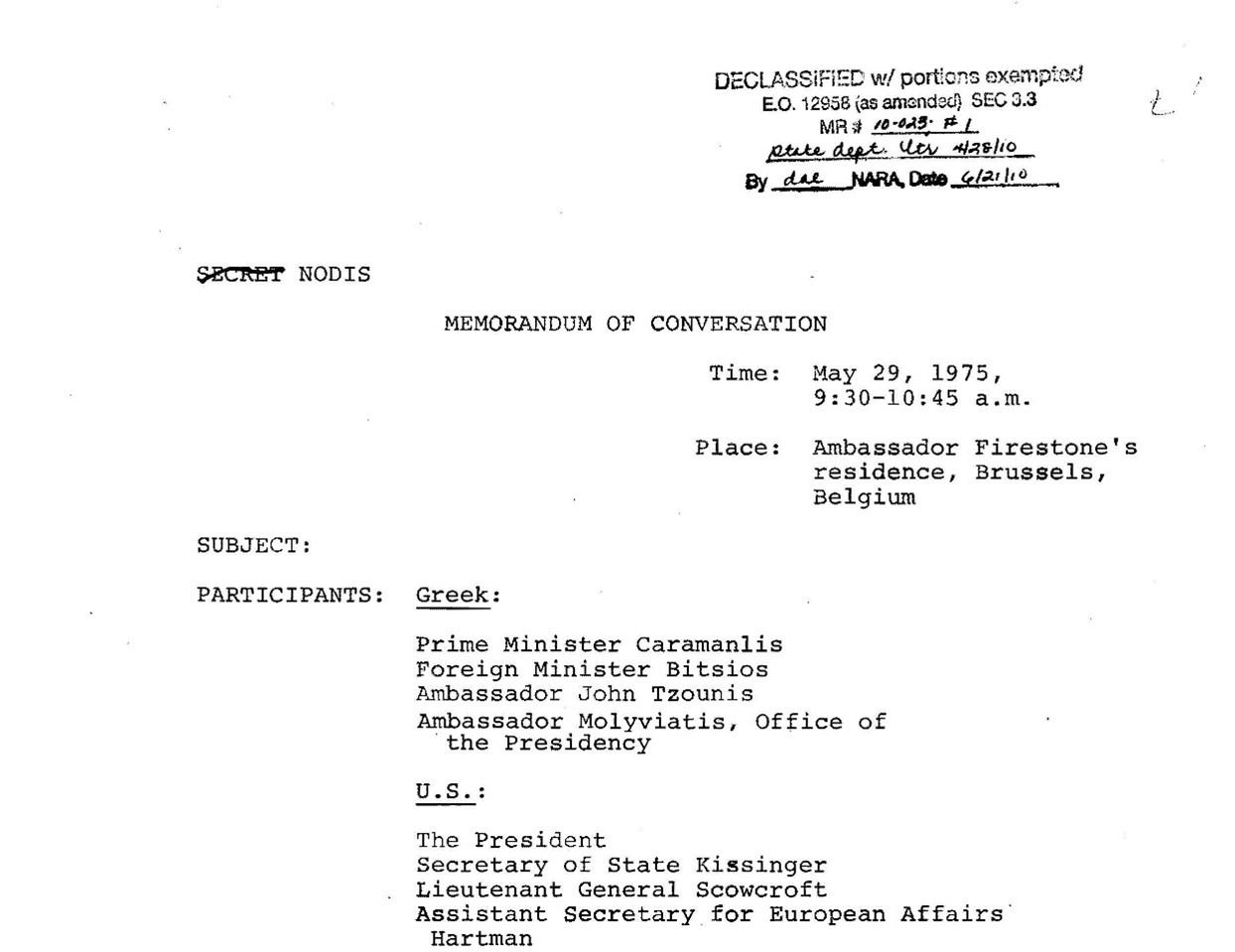 Χένρι Κίσινγκερ, ενώ την ελληνική αντιπροσωπία συμπλήρωναν οι πρέσβεις