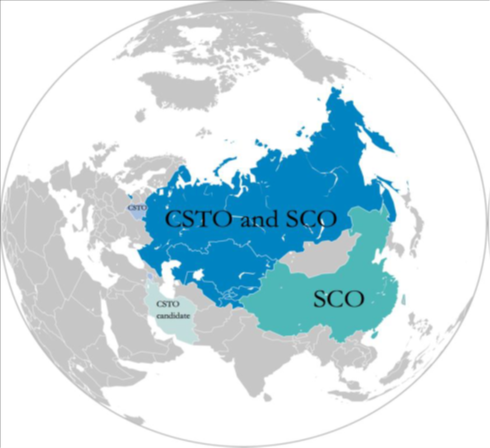 (2)Οργανισμό της συνθήκης συλλογικής Ασφάλειας (CSTO – Collective Security Treaty Organization). Το 1992, έξι μετασοβιετικά κράτη που ανήκουν στην Κοινοπολιτεία Ανεξαρτήτων Κρατών, η Ρωσία, η Αρμενία, το Καζακστάν, το Κιργιζιστάν, το Τατζικιστάν και το Ουζμπεκιστάν – υπέγραψαν τη Συνθήκη Συλλογικής Ασφάλειας. Άλλα τρία μετασοβιετικά κράτη – το Αζερμπαϊτζάν, η Λευκορωσία και η Γεωργία – υπέγραψαν το επόμενο έτος και η συνθήκη τέθηκε σε ισχύ το 1994. Πέντε χρόνια αργότερα, έξι από τα εννέα κράτη, εκτός από το Αζερμπαϊτζάν, τη Γεωργία και το Ουζμπεκιστάν, συμφώνησαν να ανανεώσουν τη συνθήκη για πέντε ακόμη χρόνια και το 2002 τα έξι κράτη συμφώνησαν να δημιουργήσουν τον Οργανισμό της Συνθήκης Συλλογικής Ασφαλείας ως στρατιωτική συμμαχία.