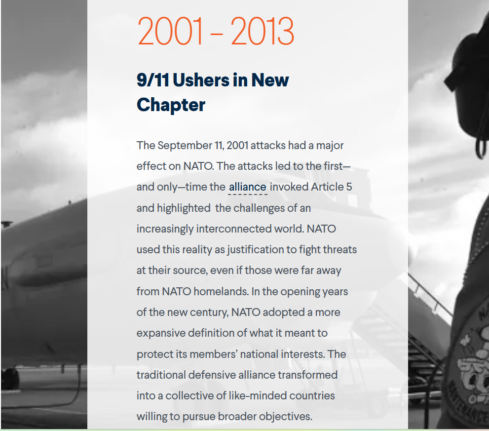 Χρονολόγιο του NATO στον 21ο Αιώνα από το International Institutions & Global Governance και το Conflict & Warfare